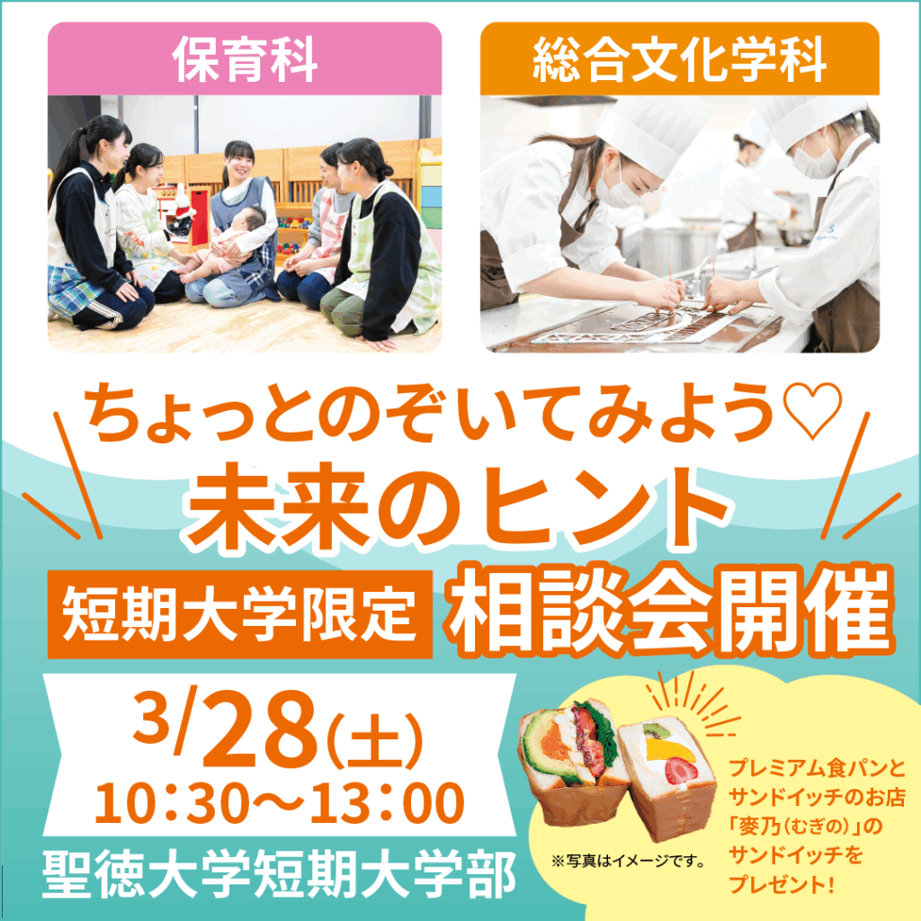 3/28(土)【短期大学限定】「ちょっとのぞいてみよう♡未来のヒント」相談会開催!
