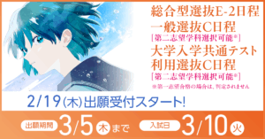 総合型選抜E-2日程、一般選抜・大学入学共通テスト利用選抜C日程 2/19~出願スタート
