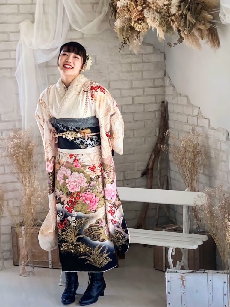 母の振袖で、全体的に色が淡くてお花の柄も可愛かったからです。