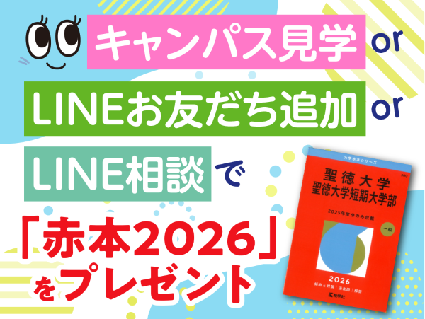 聖徳大学では、一般選抜を受ける方のために「赤本2026」を配付中です。