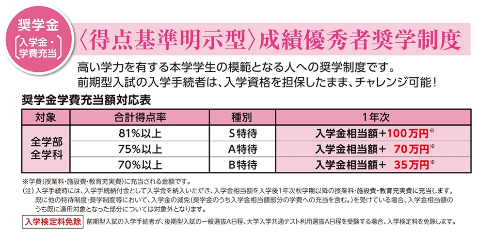 がんばる受験生を応援する入試特待制度が、あなたの聖徳で学びたい気持ちに応えます。