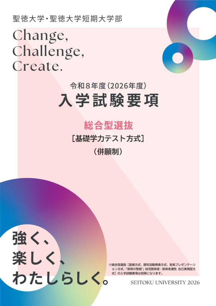 みなさんこんにちは。聖徳大学では2026年度入試から、新しい総合型選抜の方式が加わりました。その名も「基礎学力テスト方式」です。