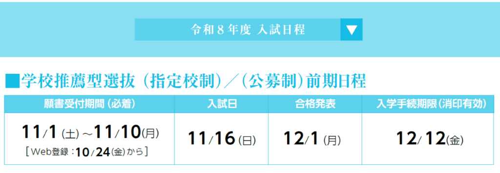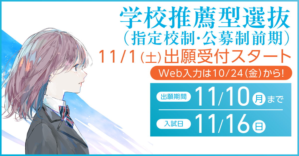 学校推薦型選抜(指定校制・公募制 前期日程)Web入力10/24(金)~、出願受付11/1(月)スタート