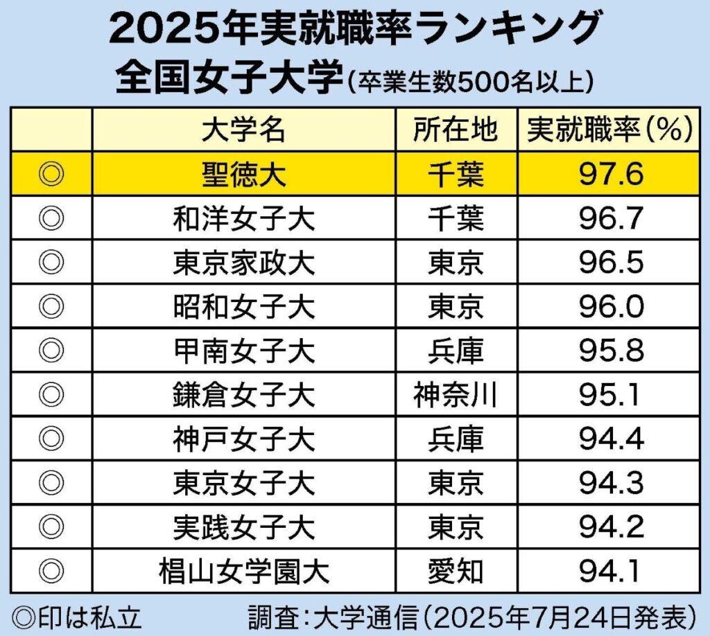 記事「速報!2025年実就職率ランキングで 聖徳大学が5年連続で女子大学全国1位の快挙達成!」