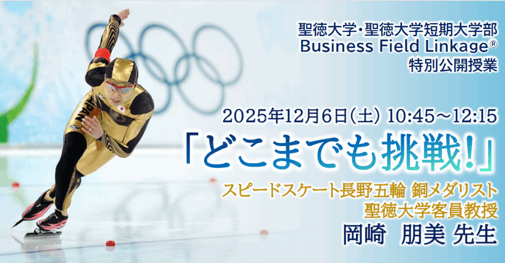 12月6日(土)に、長野オリンピック銅メダリストであり、本学客員教授の岡崎朋美先生 をお迎えし、Business Field Linkage® 特別公開授業「どこまでも挑戦!」 を開催します。