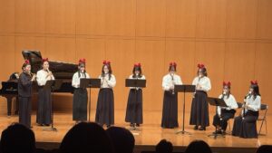 柏原美緒先生が学生と一緒に演奏している様子