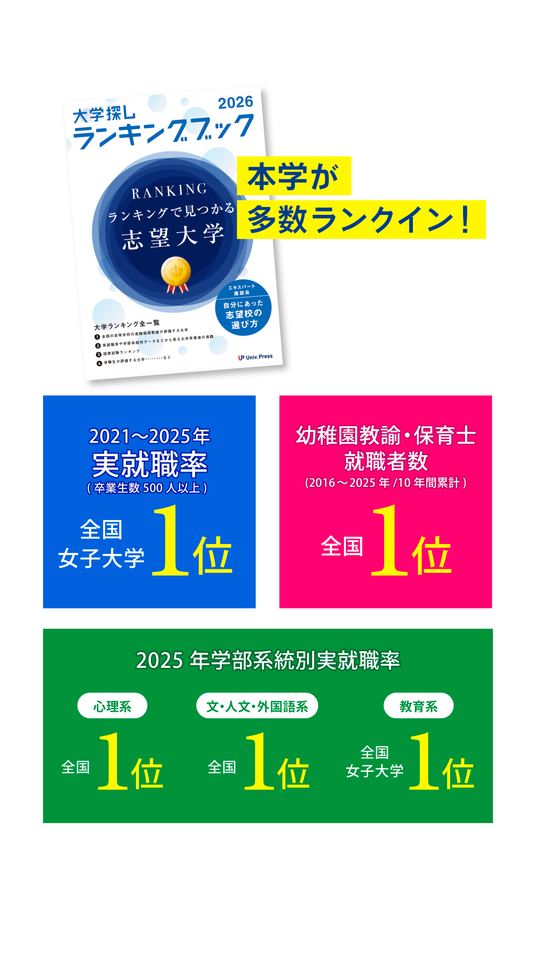 ・教育系 全国女子大学1位そのほかにも複数の分野でランクインしました。ぜひご覧ください。